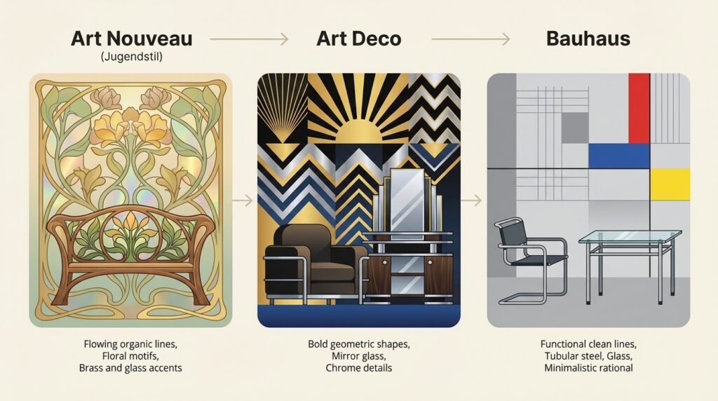 Die Jahrzehnte um die Wende zum 20. Jahrhundert waren geprägt von einem tiefgreifenden Wandel im Verständnis von Design. Künstler, Handwerker und Designer wandten sich von rein historistischen Formen ab und orientierten sich an neuen Idealen: Natur, Moderne und Funktion.